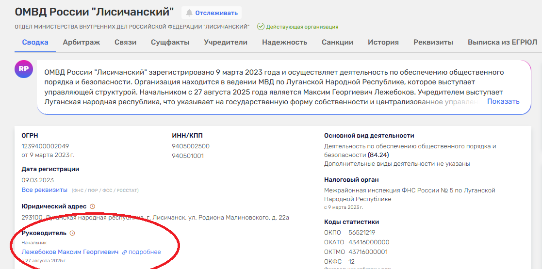 Приблизно за місяць до цього російська окупаційна адміністрація змінила керівництво поліції в Лисичанську. Начальником місцевого відділу внутрішніх справ призначили Максима Лежебокова — кадрового офіцера зі Ставропольського краю.