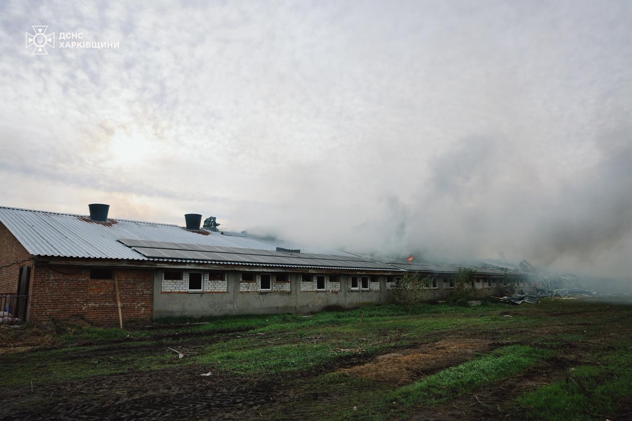 Ворожий удар спричинив масштабну пожежу: зайнялися вісім будівель для утримання тварин загальною площею 13,6 тисячі квадратних метрів. Унаслідок обстрілу постраждав співробітник сільгосппідприємства.