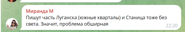 За інформацією, наведеною мешканцями окупованої Луганщині, тамтешні енергетики не дають точної інформації про причини відсутності електрики та терміни поновлення електропостачання, люди із посиланням на «РЕС» повідомляють про аварію.