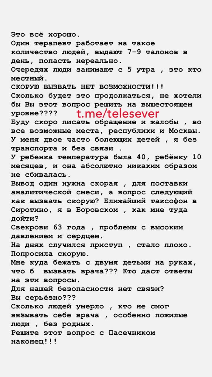 Складніша ситуація в селищах та селах: окрім черг та браку лікарів люди які не мають власного транспорту, нарікають на неможливість викликати «швидку» через відсутність зв’язку.