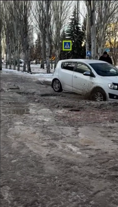 В окупованому Луганську каналізаційні стоки на вулиці Комарова перетворили проїжджу частину на суцільну крижану пастку. За інформацією місцевих мешканців, вода замерзає просто на дорозі, через що автомобілі буксують і застрягають, а виїзд з дворів перетворюється на справжній квест.