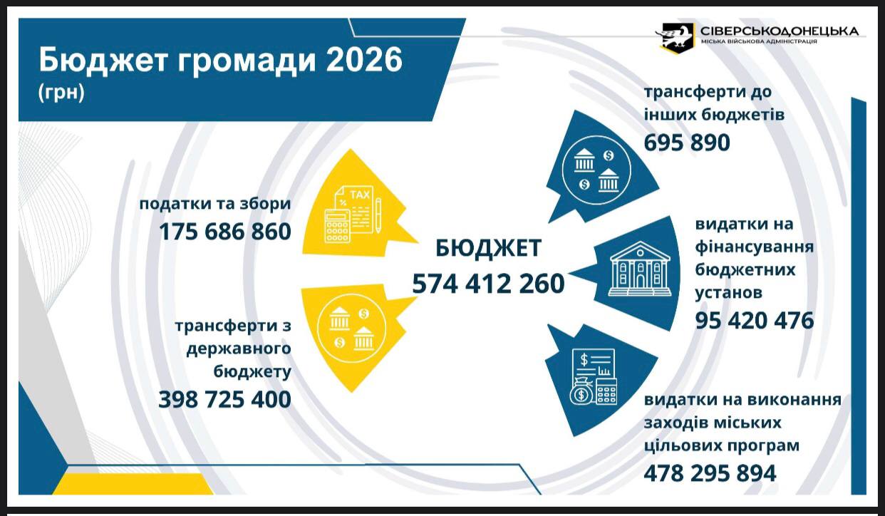 Як повідомила начальниця фінансового управління Марина Багрінцева, бюджет сформовано вже для Сіверськодонецької міської територіальної громади. Назву приведено у відповідність до чинного законодавства, що також відображено у показниках Державного бюджету на 2026 рік.