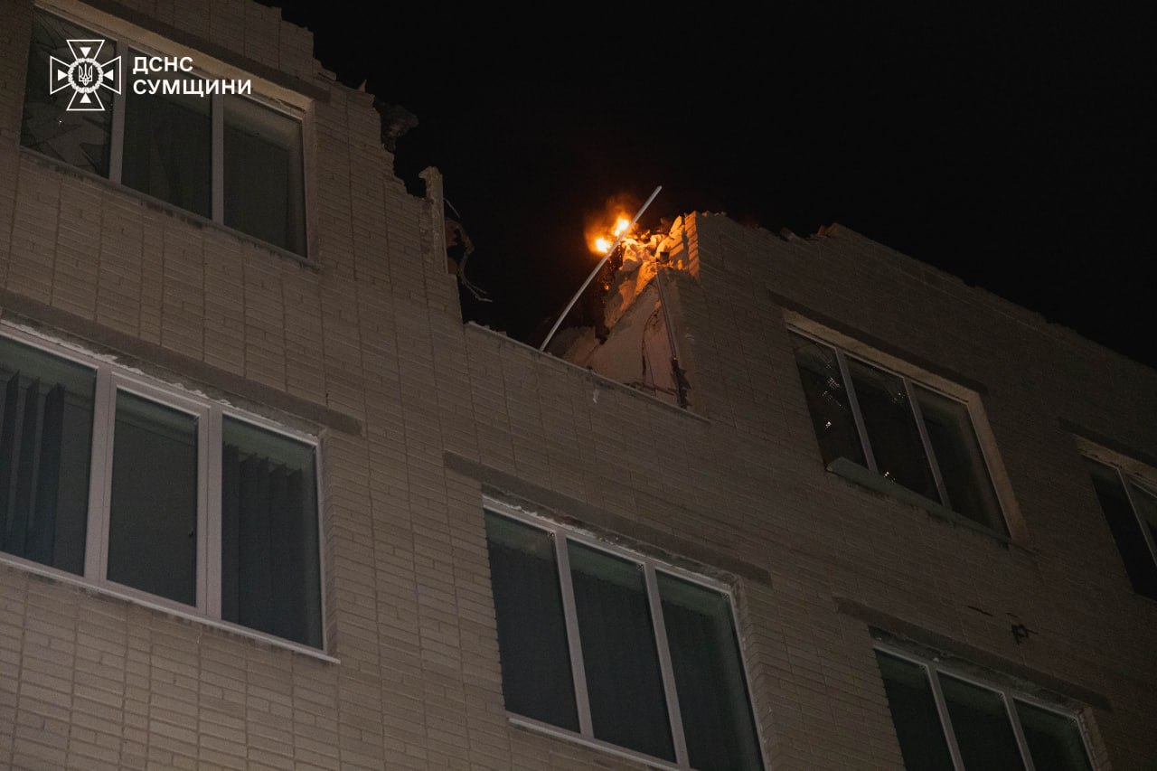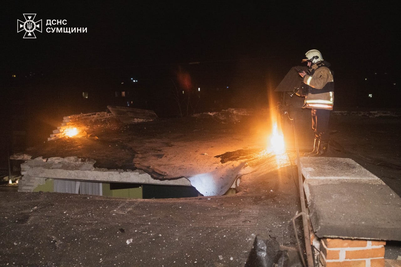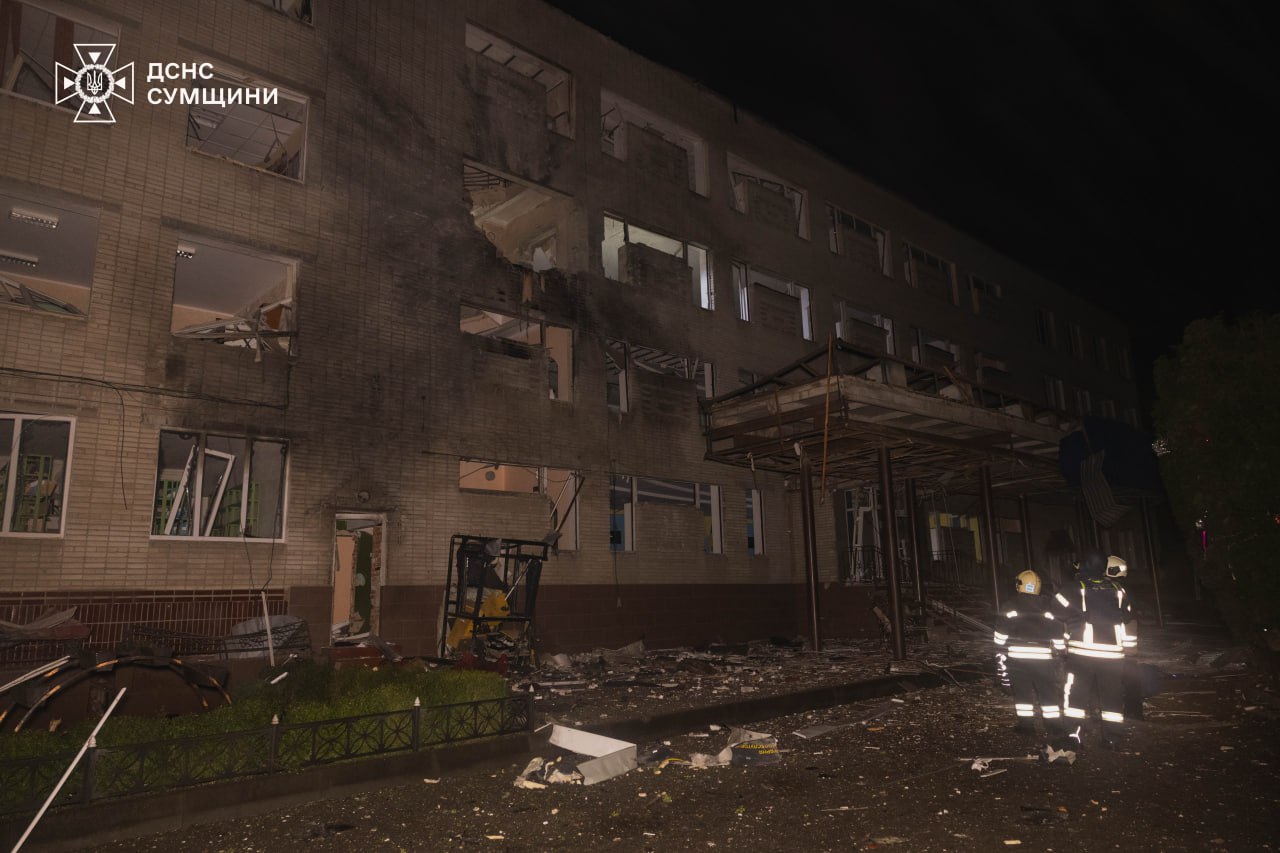 У Сумах унаслідок нічної атаки російських ударних безпілотників зазнав пошкоджень навчальний заклад. Про це повідомили в Головному управлінні ДСНС України в Сумській області.