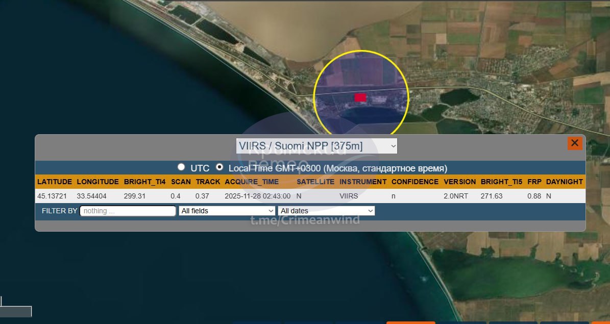У тимчасово окупованому Криму в районі Сакської ТЕЦ зафіксовано пожежу на території науково-виробничого об’єднання «Йодобром». Про це повідомив телеграм-канал «Крымский ветер», посилаючись на дані супутникової зйомки.