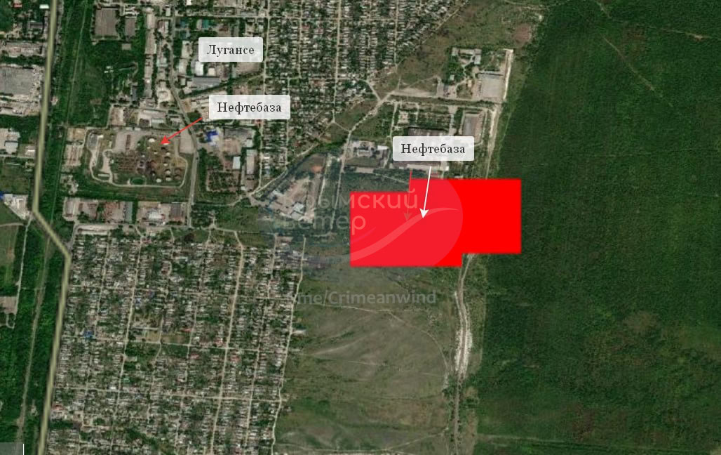 За інформацією моніторингової групи «Кримський вітер», у Луганську сталася пожежа на території нафтобази. Факт загоряння підтверджують дані супутникової зйомки.